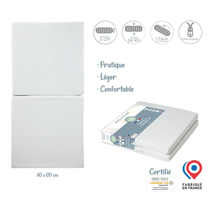BabyCalin Klappbare Extra-Matratze, 60cm x 120cm, Polyester, Mehrfarbig, 60x120x4 cm (Lot de 1)
