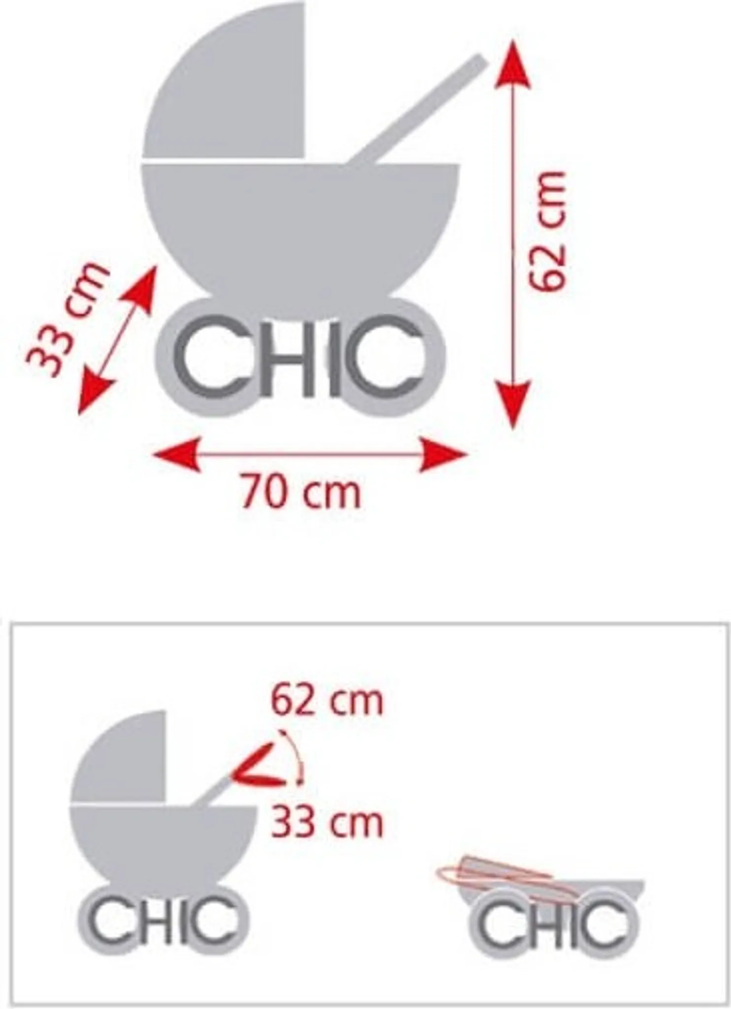 Größe Puppenwagen: ca. 70 x 33 x 62 cm