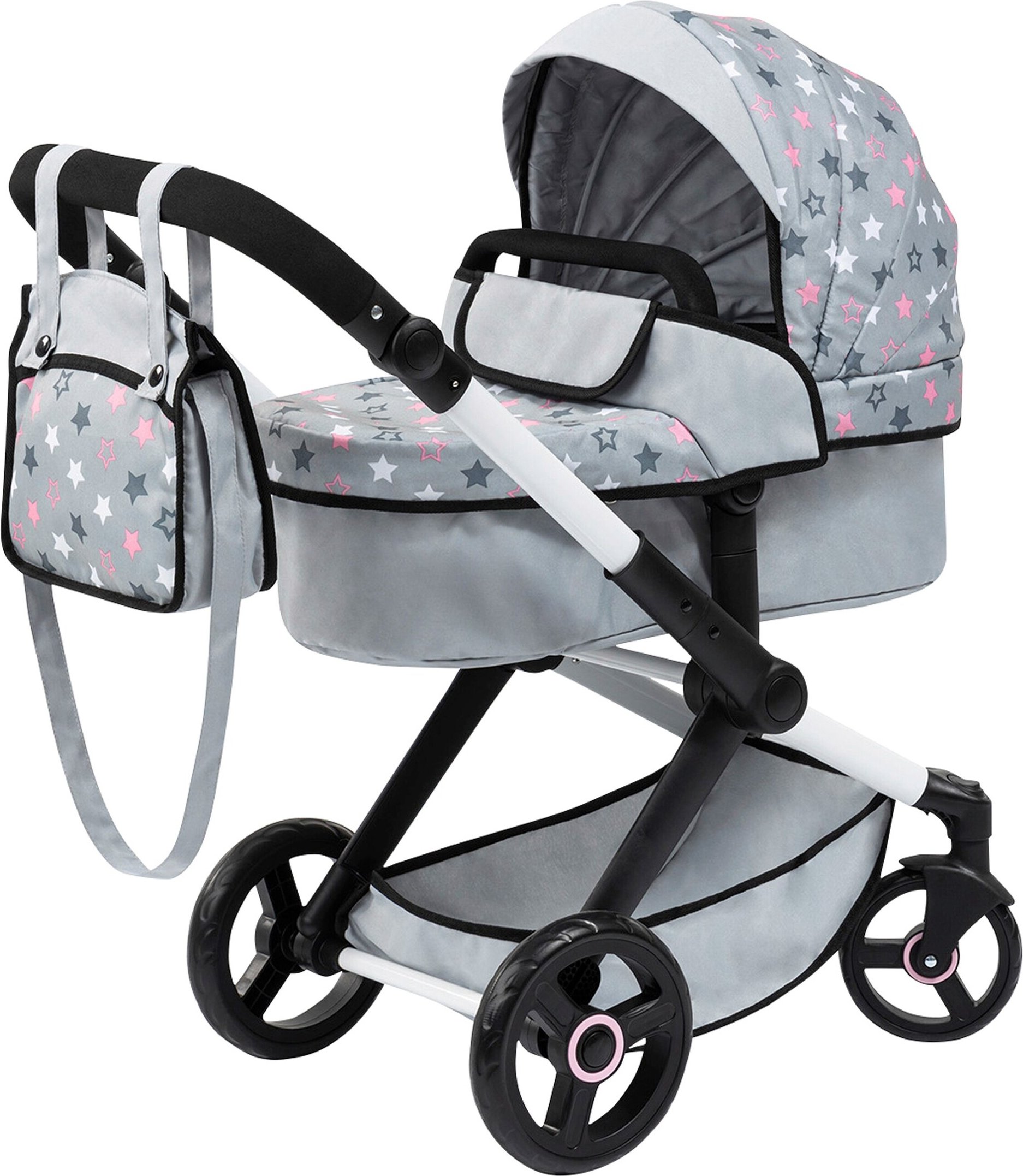 Kombi-Puppenwagen Xeo Grau mit Sterne, 1 Tasche