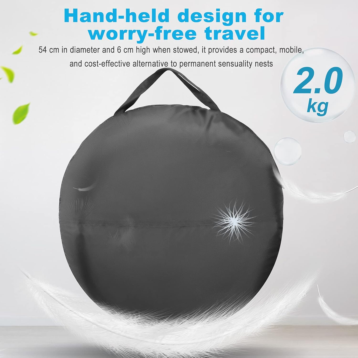 Das pop up spielzelt lässt sich leicht zu einer Tragetasche mit einem Durchmesser von 54 cm und einer Höhe von 6 cm zusammenfalten, die keinen Platz beansprucht und für Sie bequem zu verstauen oder mitzunehmen ist,Zur Aufbewahrung können Sie sich die Faltmethode im Video ansehen