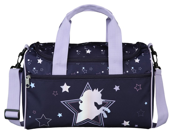 Sporttasche mit großen Hauptfach mit 2-Wege Reißverschluss, zusätzliches Reißverschlussfach auf der Vorderseite, 2 Tragegriffe mit Klettverschlussverbindung, abnehmbarer verstellbarer Schultergurt, Volumen ca. 8 Liter