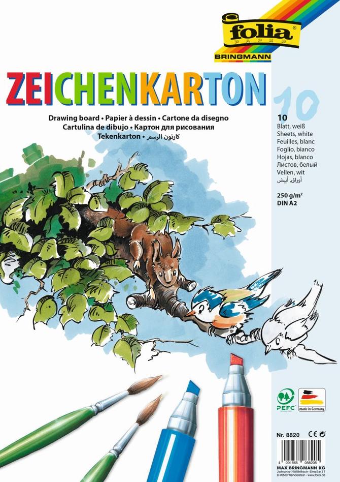 folia Zeichenkarton 250 g/m², DIN A2, 10 Bogen, weiß