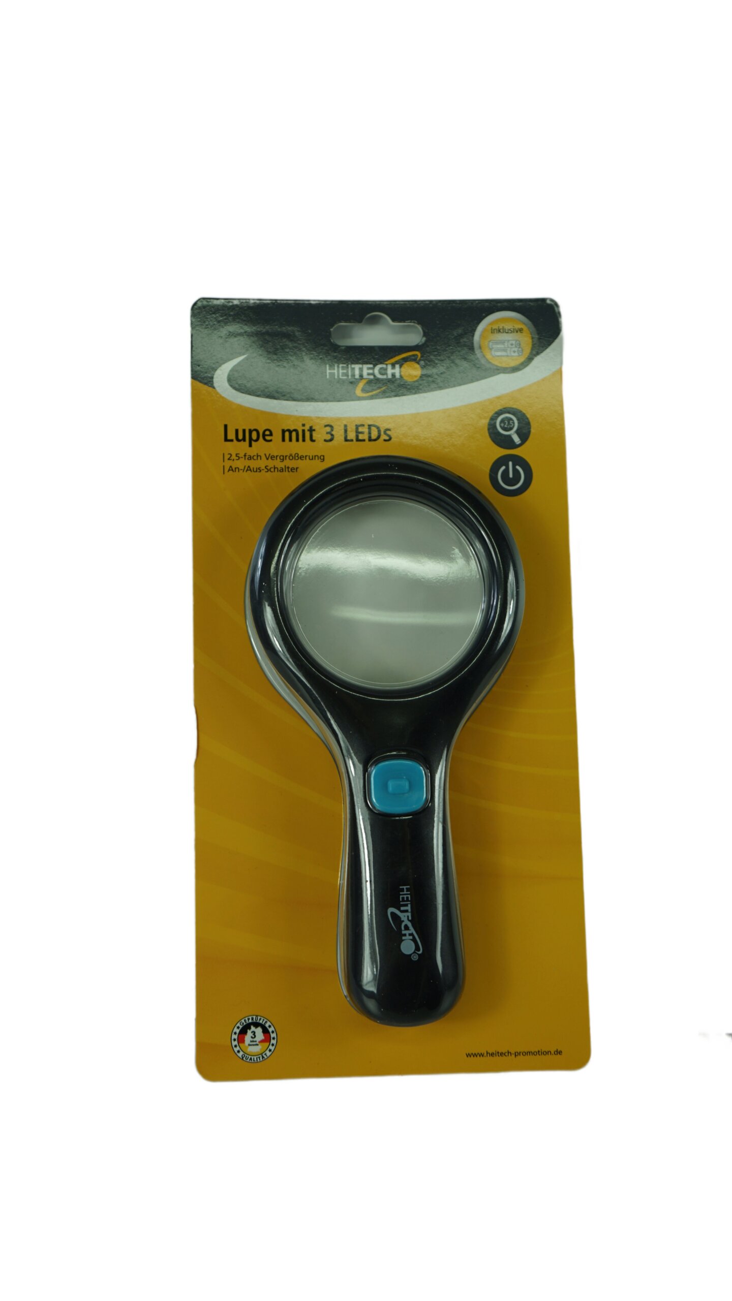 HEITECH LED Leuchtlupe mit 3 LED, 2.5-fach Vergrößerung inklusive 2 Batterien