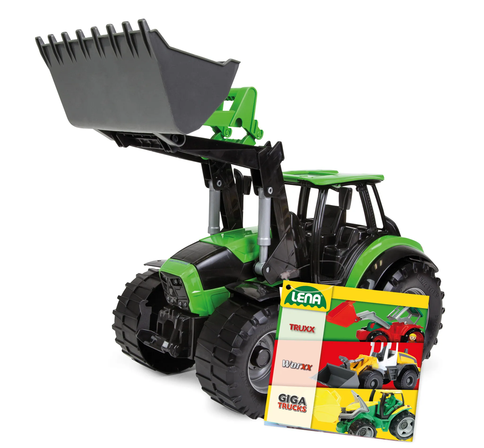 Der LENA® Deutz Traktor Fahr Agrotron 7250 TTV ist eine realitätsnahe Nachbildung des Originalfahrzeugs. Das 45 cm lange Fahrzeug in robuster Ausführung ist zum Spielen für drinnen und draußen geeignet. Das grün- schwarze Fahrzeug in modernem und detailliertem Design ist ausgestattet mit 6 mm verzinkten Stahlachsen und bietet tolle Spielfunktionen, so zum Beispiel ist die Traktorschaufel sowie der Traktorarm auf je zwei Stufen verstell- und arretierbar. Maße ohne Verpackung: 45 x 19 x 22 cm.Geeignet für die Kleinen ab 3 Jahren. Verpackt in buntem Verkaufskarton mit ausführlichen Produktinformationen. Spielgut!