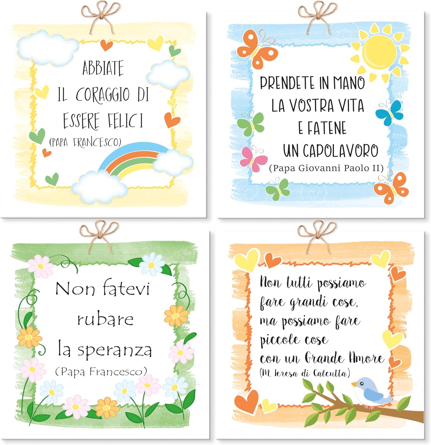 Mareli Set mit 4 Quadraten 10 x 10 cm mit Magnet zum Aufhängen an der Wand und auf Metalloberflächen, ideal als Gastgeschenk zur Taufe, Erstkommunion, Konfirmation, Hoffnung