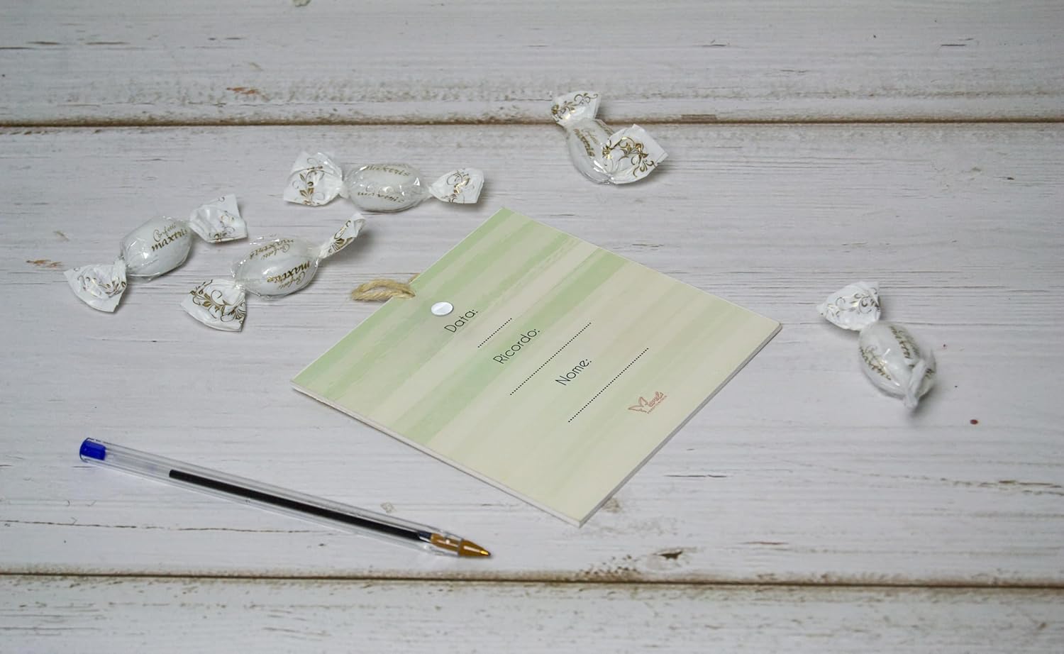 Set mit 4 Karos 10 x 10 cm, aus weißem Karton und in 4 verschiedenen Designs bedruckt; auf der Rückseite kann der Name des Geburtstagskinds und das Datum der Zeremonie mit Stift beschriftet werden.