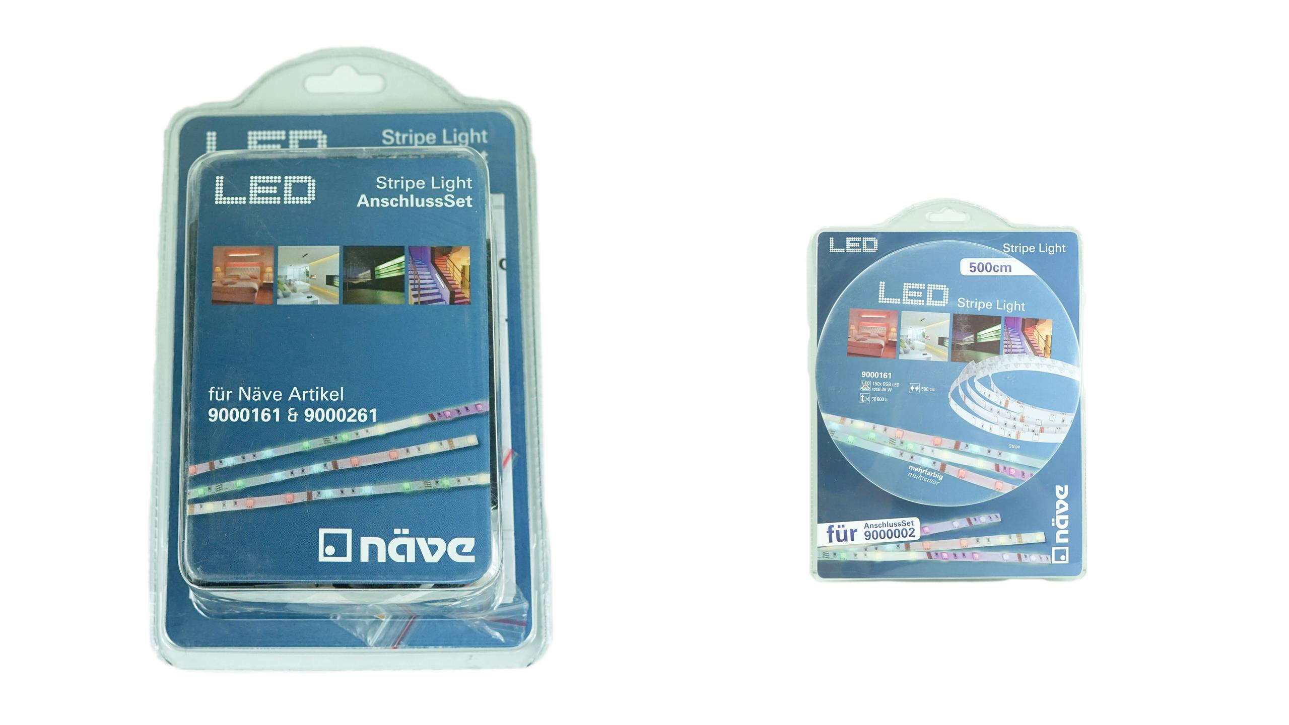 Enthält näve LED Strip Light 150 RGB LEDs 36W 500cm für Anschlussset 9000002 + näve LED Strips Light Anschlussset für näve 9000161 & 9000261