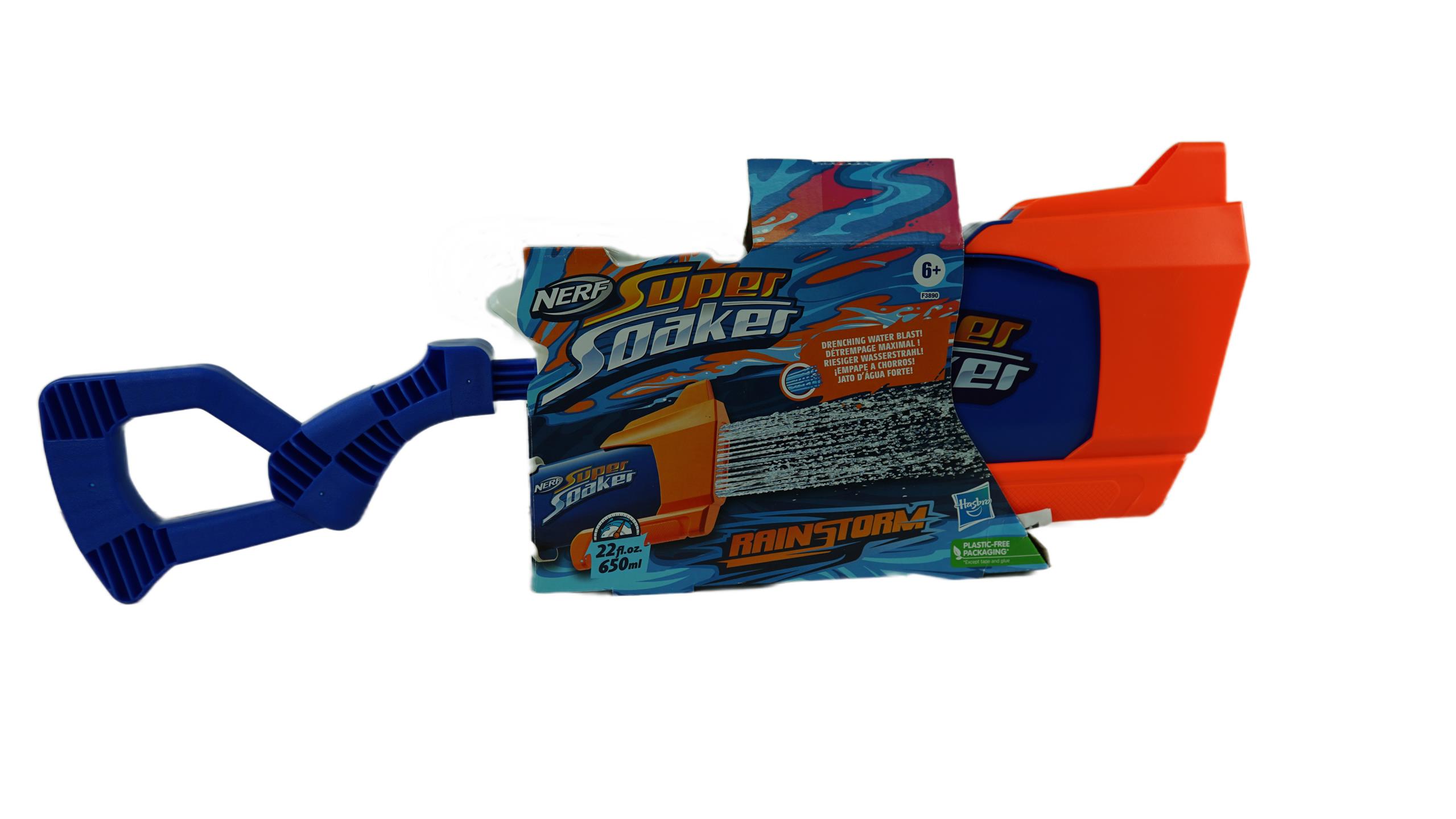 Mit dem Nerf Super Soaker Rainstorm Wasserblaster können die Mitspieler durch einen riesigen Wasserstrahl überrascht werden. Dieser Super Soaker Blaster verfügt über einen Lauf, der einen riesigen Wasserstrahl abfeuert und die Mitspieler in den Schatten stellt. Zum Füllen des Tanks wird die Vorderseite des Blasters in Wasser getaucht und der Kolben nach hinten gezogen, anschließend wird der Griff nach vorne gedrückt, um einen riesigen Wasserstrahl abzufeuern. Er ist einfach zu verwenden, sodass Kinder, Jugendliche und Erwachsene sich gemeinsam Outdoor Wasserschlachten liefern können. Die Spieler werden zu aktiven Wettbewerben voller Wasser-Action im Freien eingeladen. Der Tank fasst bis zu 650 ml. Die Nerf Super Soaker Marke sorgt seit 1989 für Wasser- Action und bietet nach wie vor jede Menge nassen Spaß. Die Nerf Super Soaker Blaster ermöglichen schnelle Wasser-Attacken im Freien. Nerf Super Soaker and all related properties are trademarks of Hasbro.
