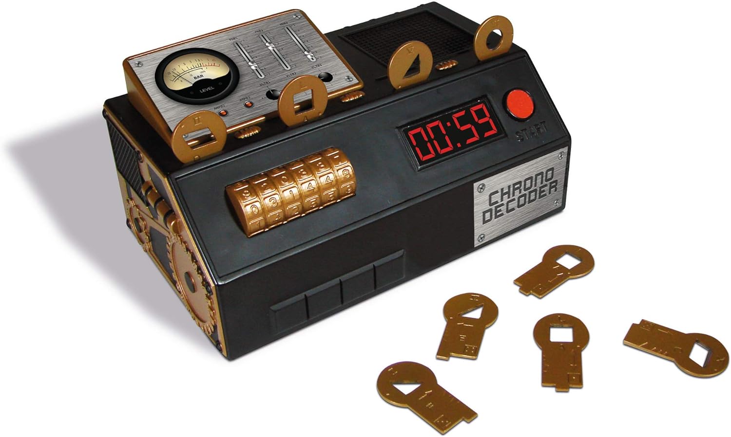 Chrono Decoder – Um das Spiel zu starten, wird er eingeschaltet, ab dann läuft die Zeit von 60 Minuten, jeder der 3 Abschnitte in diesem Spiel wird mit einem Schlüsselcode gelöst