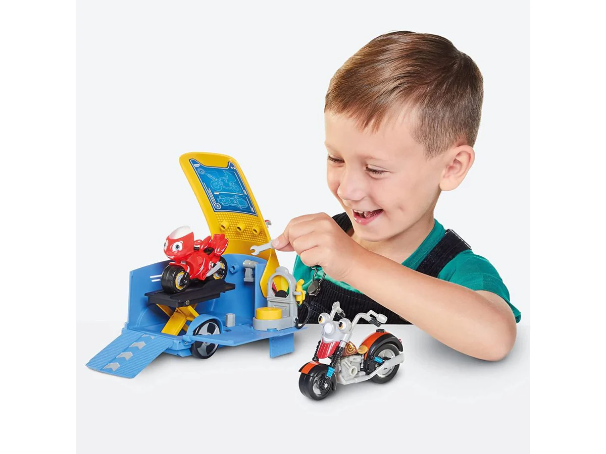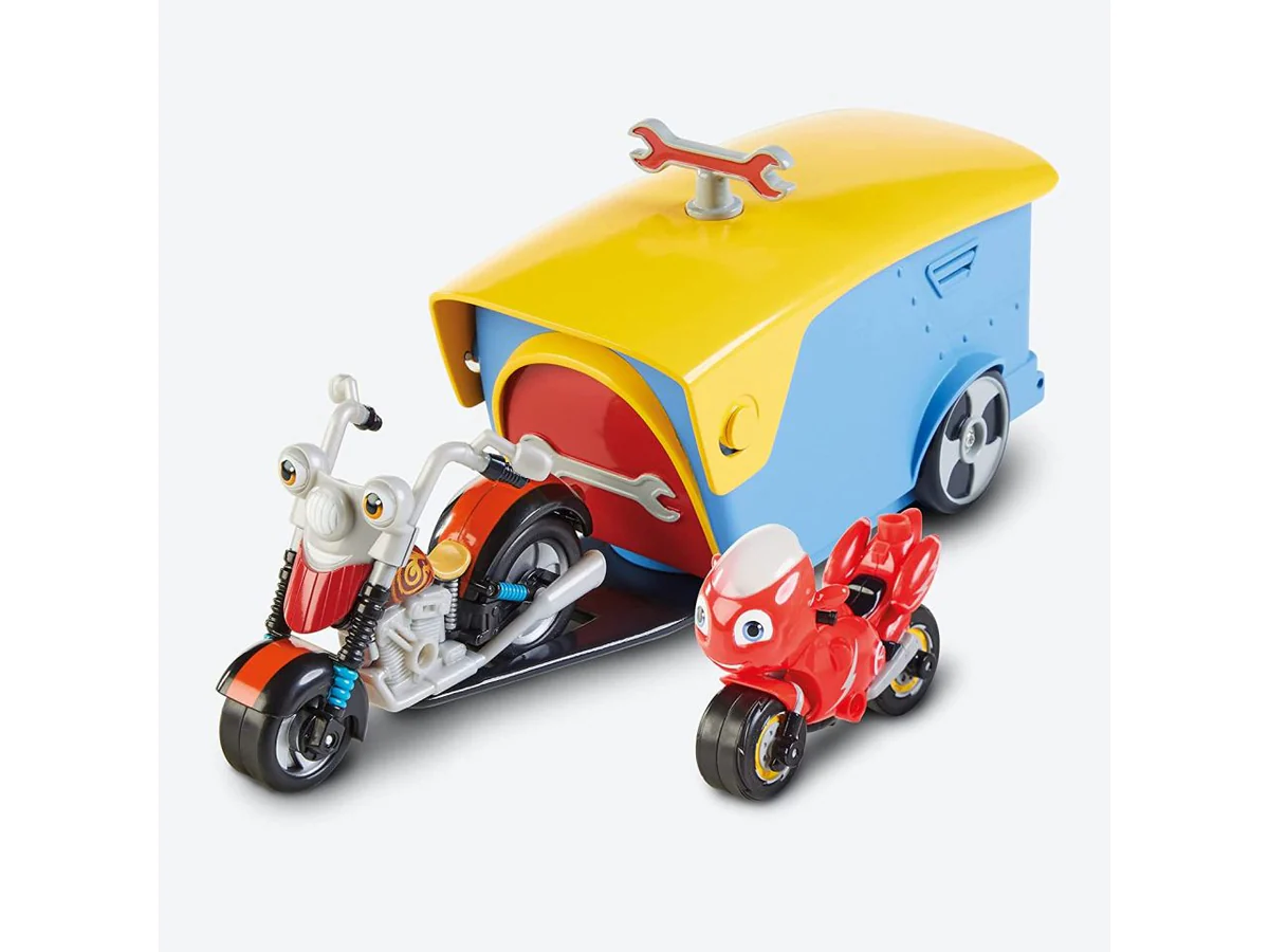 Enthält Ricky, Maxwell und einen Verwandlungsanhänger voller lustiger Funktionen, die es zu entdecken gilt! Verlängern Sie die Spielzeit mit einer neuen Reihe von Motorradspielzeugen und Spielsets, die den Geist, die Energie und den Spaß von Ricky Zoom und der Welt von Wheelford einfangen. Der Eröffnungstrailer zeigt Maxwells mobile Reparaturstation! Kinder werden es lieben, mit Ricky zu spielen, ihn aufzustellen und wieder zusammenzuklappen, und Maxwell kann ihn überallhin ziehen. Gut ausbalanciert: Dieses Fahrradspielzeug ist perfekt für Vorschulkinder, hat Freilaufrollen und bleibt im Stillstand stabil, sodass es nicht umkippen kann! Dieses Spielzeug erfordert keine Kraft, diese Bike-Buddy-Spielzeuge regen die Fantasie an und sorgen für stundenlangen Spaß und kreatives Spielen. Mit diesen kultigen Spielzeugen für 3-Jährige können Kinder die Helden der Show sein. geeignet für Vorschulbegeisterte ab 3 Jahren
