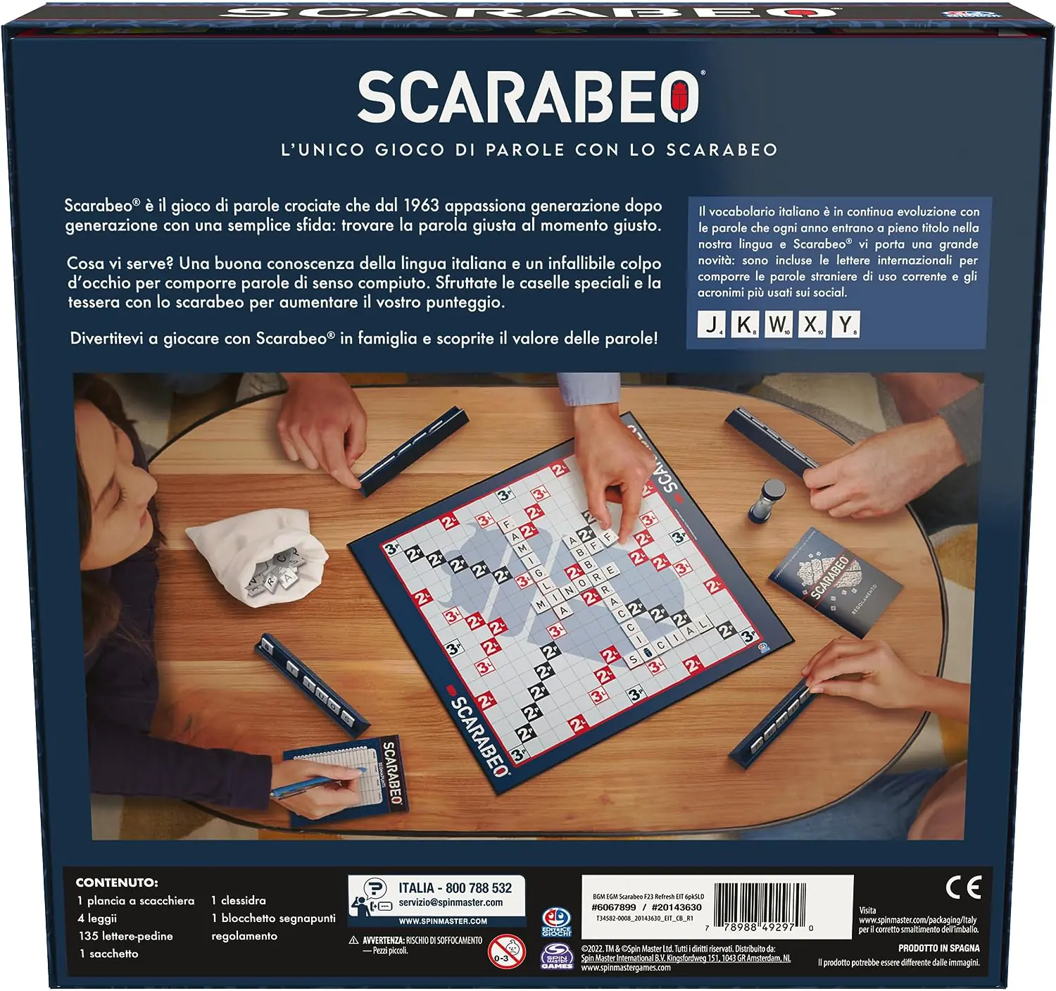 Scarabeo , das klassische Wortspiel von Editrice Giochi, feiert in einer Neuauflage seine triumphale Rückkehr. Dieses Brettspiel ist ideal für Gruppen von 2 bis 4 Spielern und bietet spannende Vokabelherausforderungen für alle Wortliebhaber.