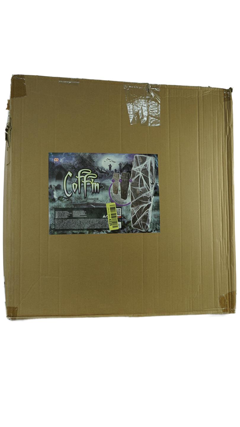 Schon seit mehr als zweitausend Jahren liegt ein unheimlicher Zombie in diesem düsteren Sarg gefangen. Den 1,6m großen Sarg kannst du in drei unterschiedlichen Versionen gestalten. Entweder als schlichte Holzversion oder überzogen mit schwarzem Fetzenstoff. Als Krönung brauchst du nur noch das weiße Spinnennetz herumwickeln und fertig ist der schaurig schöne Sarg.